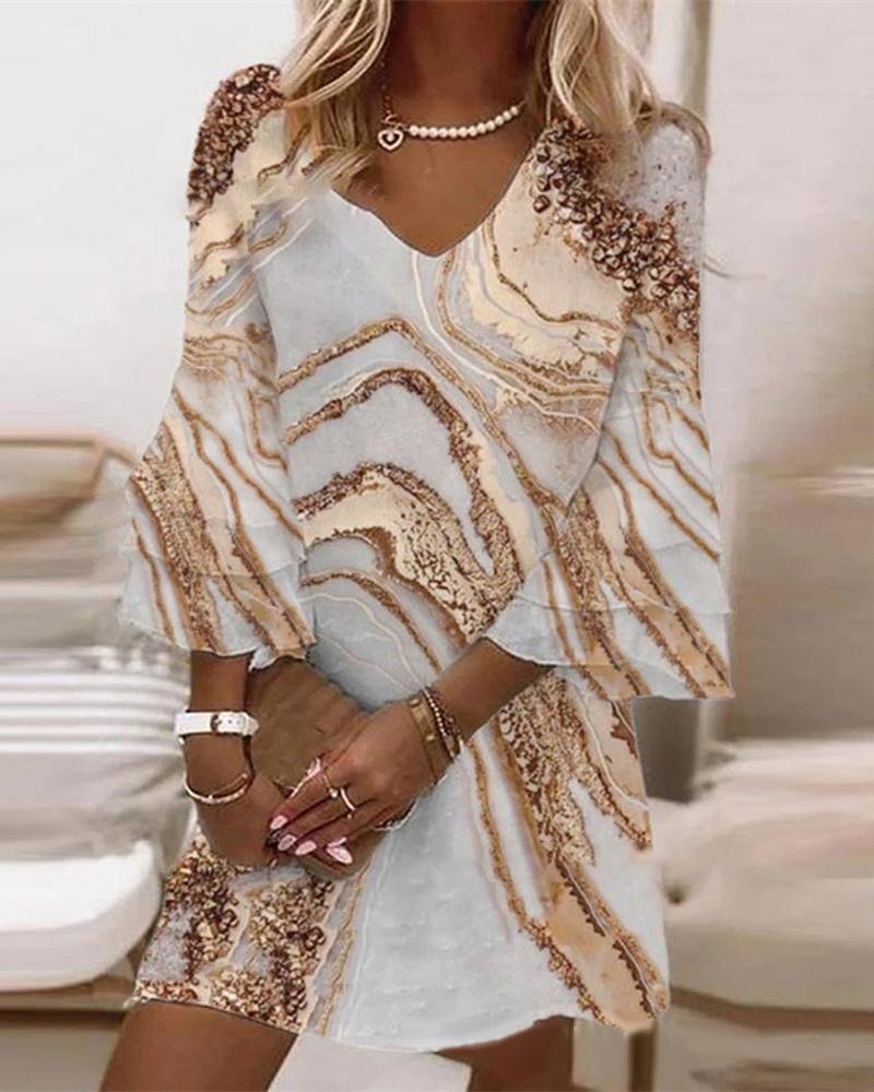 Tribal Print Bell Sleeve Casual Dress